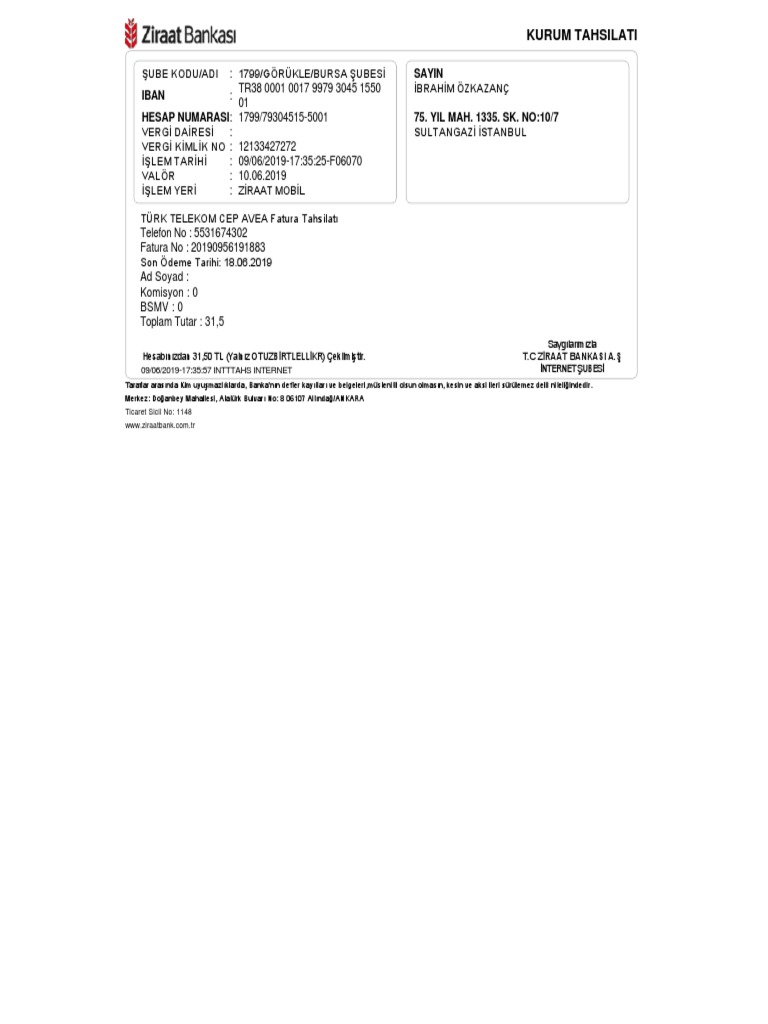 Dekont 26 12 2019 Attman Resim Yukle Hizli Resim from i.imgyukle.com Kimlik (gerçek kişi) veya vergi numarası (tüzel kişi) ile ödemenizi yapabilirsiniz. Vergi usul kanununun mükerrer 257 nci maddesinin (1) numaralı bendinin maliye bakanlığına verdiği yetkiye istinaden bakanlıkça yayımlanan ve 243 ve 246 sıra numaralı vergi usul kanunu genel tebliğleri ile bankalara düzenleme zorunluluğu getirilen, dekont veya hesap bildirim cetvelleri ile tevsik edilme Gelir i̇daresi başkanlığı mükellef hizmetleri daire başkanlığı'na bağlı çağrı merkezi olarak faaliyette bulunan vergi i̇letişim merkezi, vergisel konularda hizmet vermektedir. 0879 0017 5660 0379 www.garantibbva.com.tr hesaptan eft şube adi : Online ödemelerde dekont çıktısını alıp, vergi dairesine dekontla birlikte gittiğiniz taktirde işlemleriniz hızlanacaktır. Emlak ve i̇ş yeri çevre temizlik vergileri, mayıs ve kasım ayı olmak üzere her yıl iki taksitte ödenir. Banka vergi dairesi ve vergi hesap numarası, hizmeti yaptıranın adı soyadı, banka hesap no, varsa vergi dairesi ve vergi hesap no, işin mahiyeti ve bu hizmetten dolayı alınan ücret ile yetkililerin imzaları bulunur. 2018 yılında i̇stanbul küçükyalı aydınevler mahallesi ptt'den otoyol ihlali geçiş cezası yatırdım.
